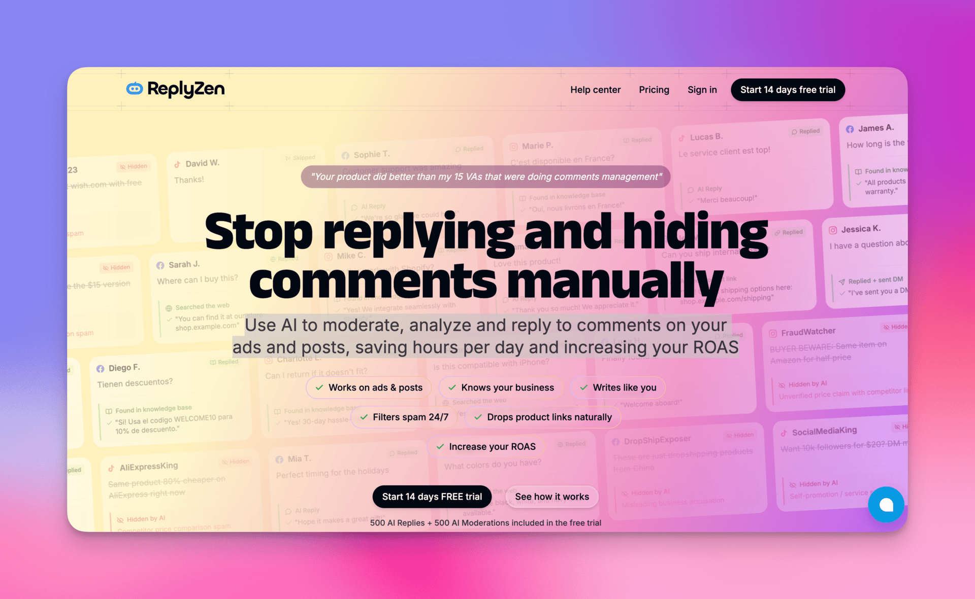 Use AI to moderate, analyze and reply to comments on your ads and posts, saving hours per day and increasing your ROAS.